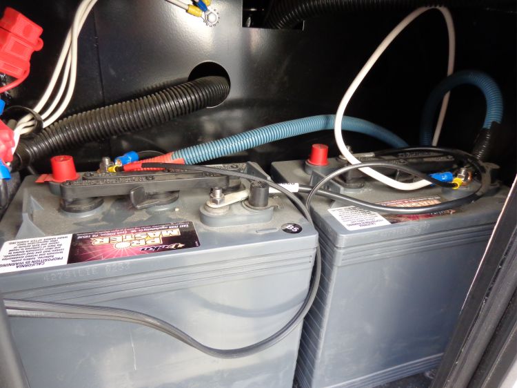 We connected the solar wire to his existing 2-6 volt battery bank. |